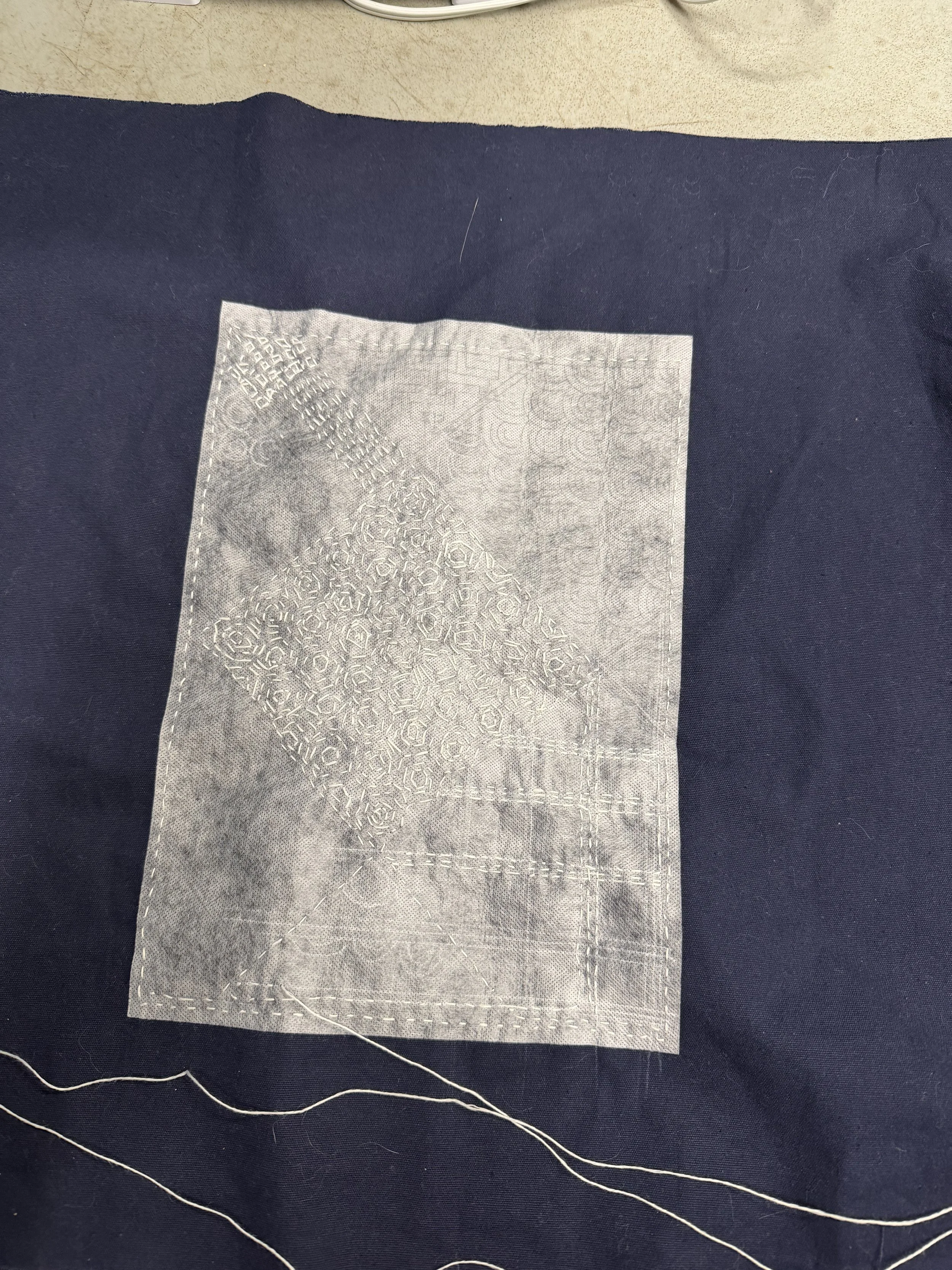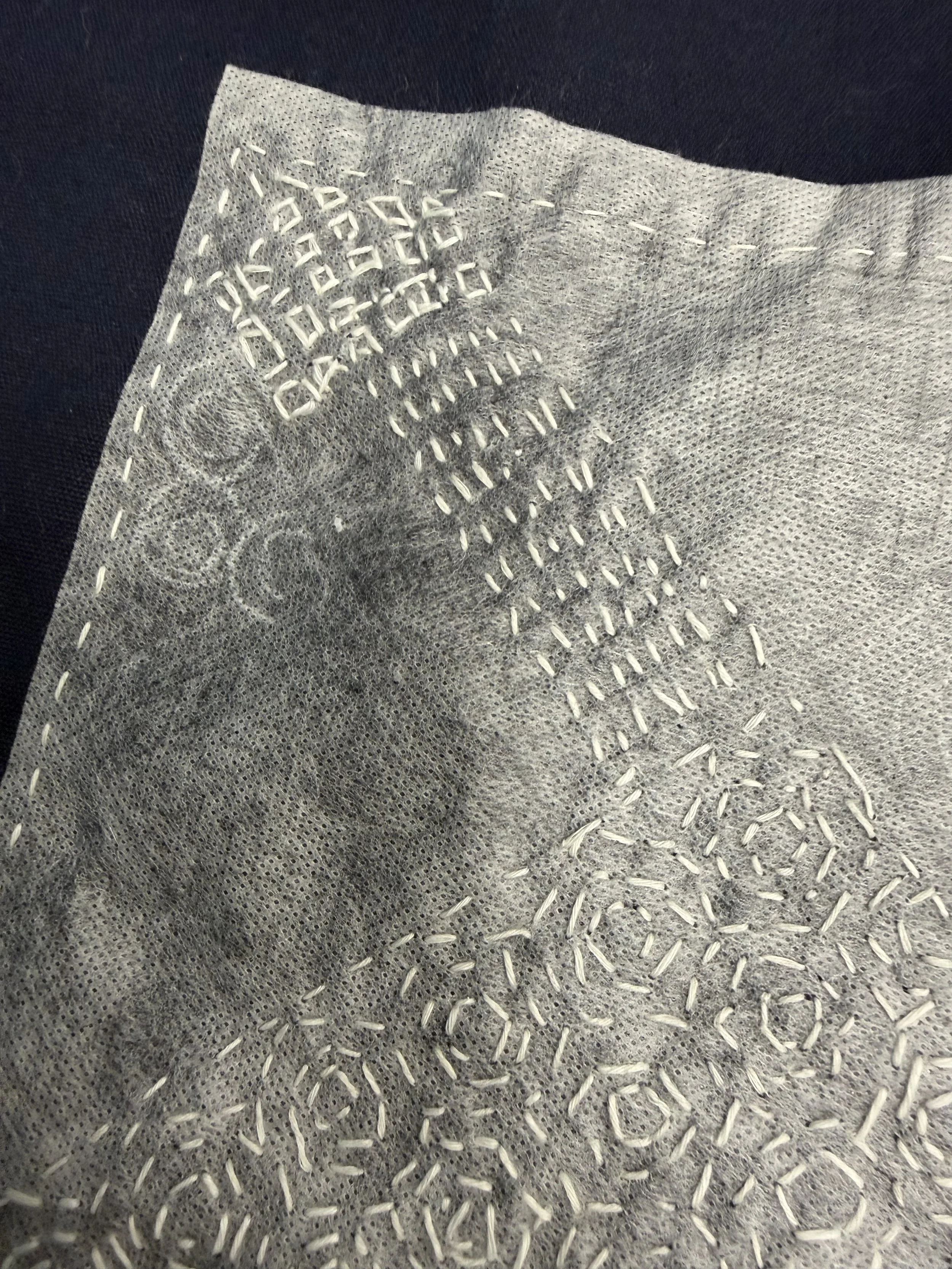I have been working on a Japanese tea mat. The panel of melting interface which is preprinted is disappearing before I can even sew it. I could quit or carry on slow stitching to the end. This weekend I was teaching my Sashiko class I called my approach “the Bob Ross of happy accidents”. Photos are in progress. I believe I will try a different approach on the other panel of maybe wearing gloves.